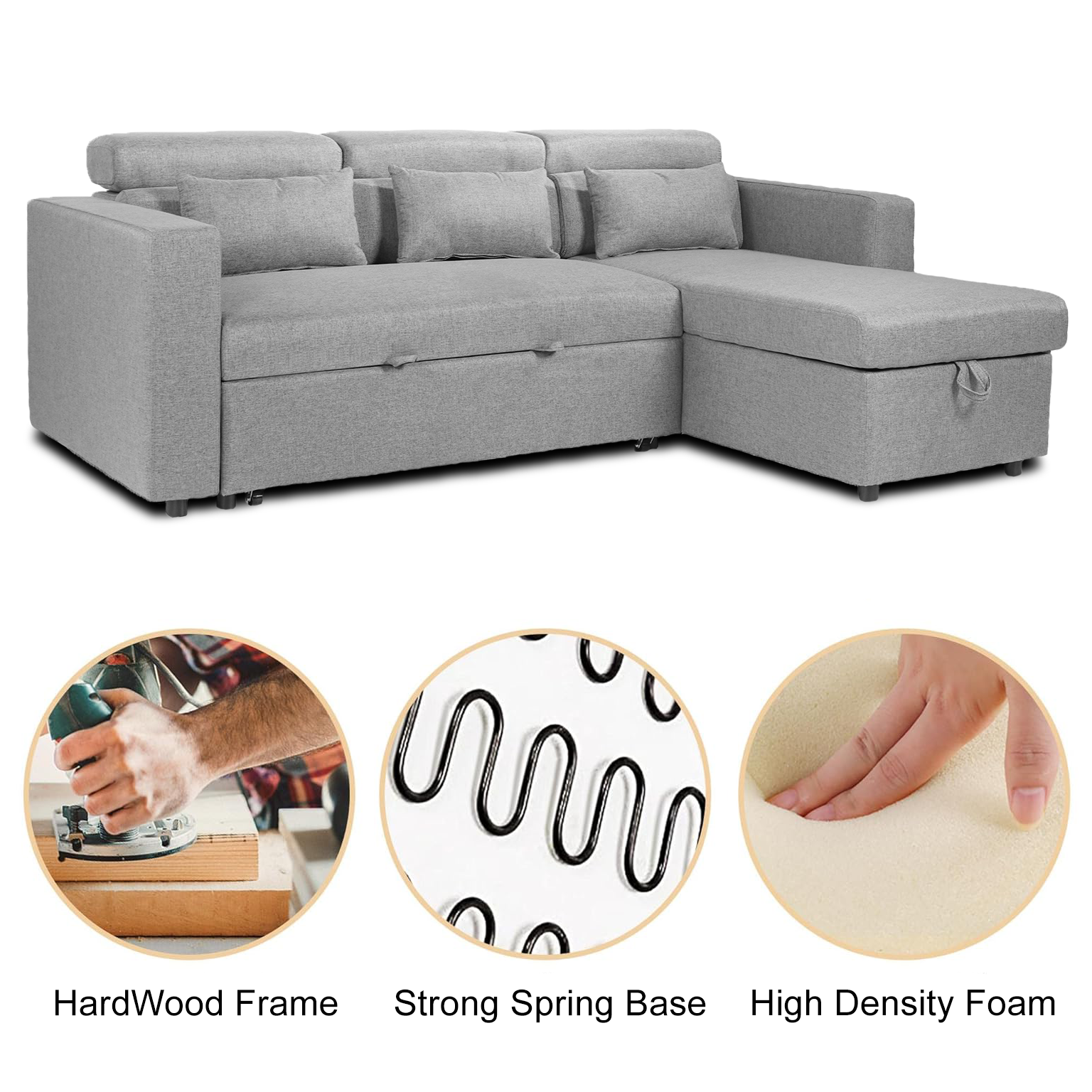 The integrated storage ottoman maximizes space efficiency, while the concealed pull-out guest bed accommodates overnight visitors without compromising your living area.